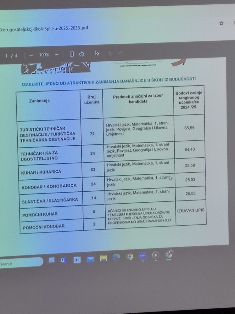 Zainteresirani učenici 8. razreda ,u pratnji psihologinje i pedagoginje, posjetili su Turističko-ugostiteljsku školu Split u sklopu Dana poslova i profesionalnog usmjeravanja. Tijekom posjeta upoznali smo se s obrazovnim programima koje škola nudi, Erasmus+ projektima te kurikulumom čije je težište na praktičnoj nastavi koja se velikim dijelom odvija u samoj školi.