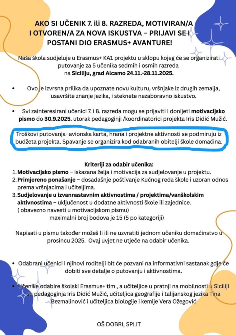 Pozivamo sve zainteresirane učenike da se prijave i iskoriste priliku za nova iskustva i učenje u međunarodnom okruženju!